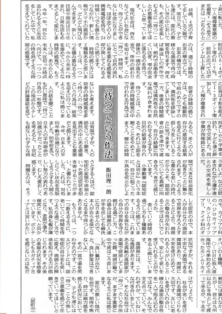 そんな社会では、「待つ」という作法がますます重要になるように私は感じます。