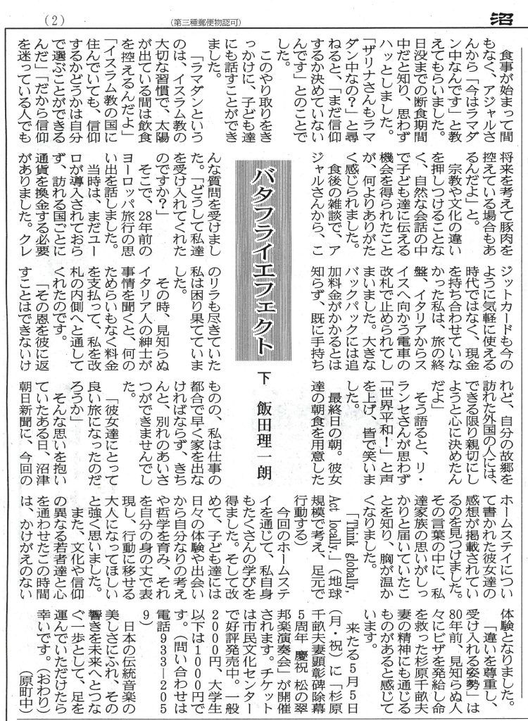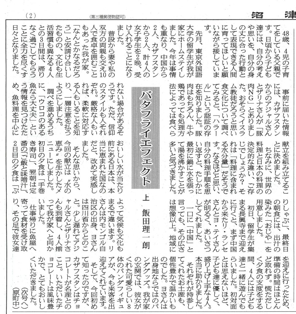 そんな思いを抱いていたある日、沼津朝日新聞に、今回のホームステイについて書かれた彼女たちの感想が掲載されているのを見つけました。
