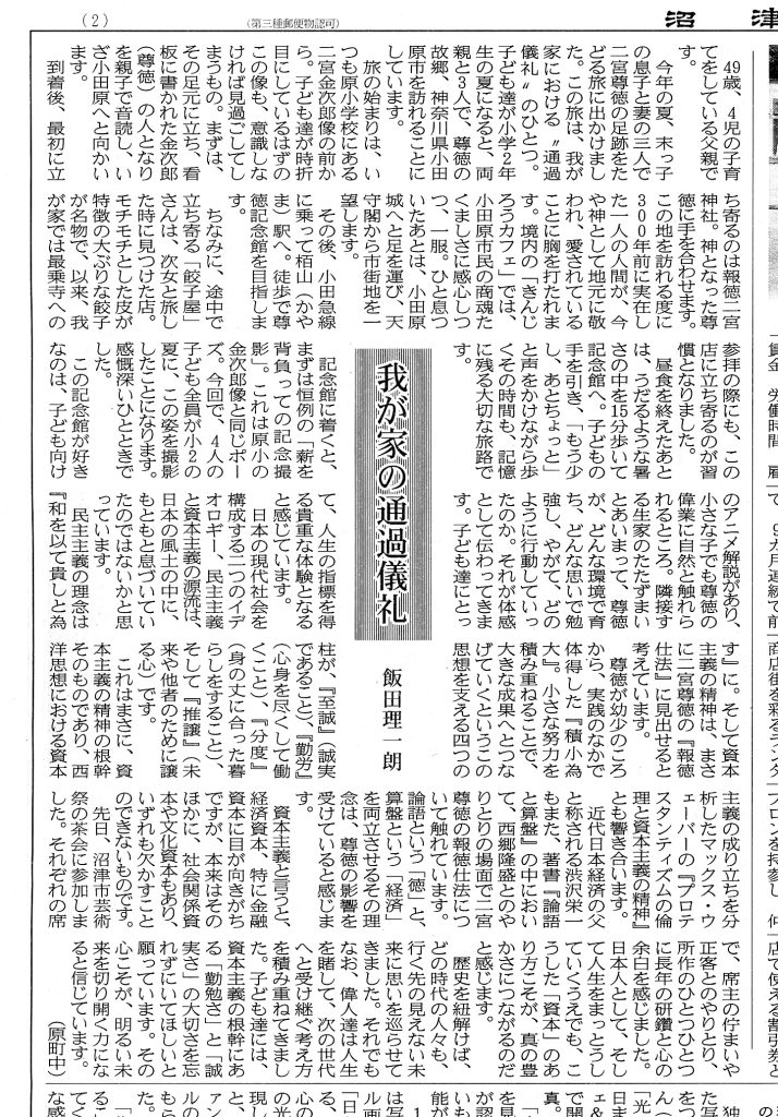 今年の夏、末っ子の息子と妻の三人で、二宮尊徳の足跡を辿る旅に出かけました。
