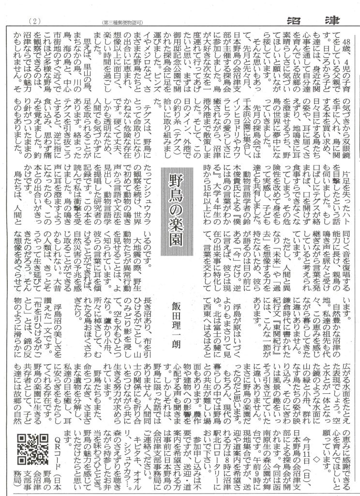 5月11日(日)、日本野鳥の会沼津支部による探鳥会が開かれます。